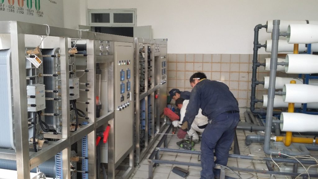 海軍舟山驅(qū)逐艦支隊40m3/h 前處理+二級RO反滲透+EDI電去離子設備安裝現(xiàn)場